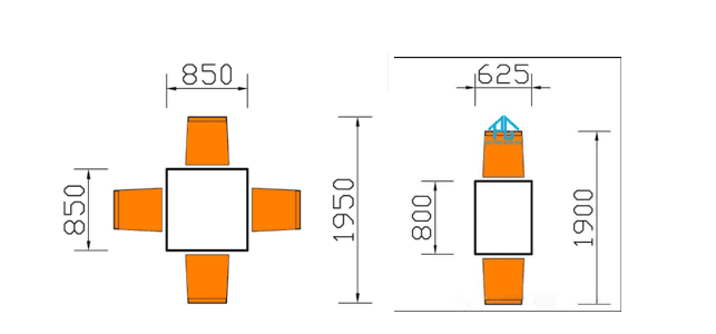 • Bề rộng thao tác của người ngồi ăn trên mặt bàn tối thiểu từ 680-750mm để tránh chạm tay vào nhau khi ăn.