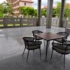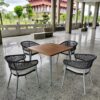 Chất liệu: mặt gỗ teak bậc A, khung inox sơn tĩnh điện.
