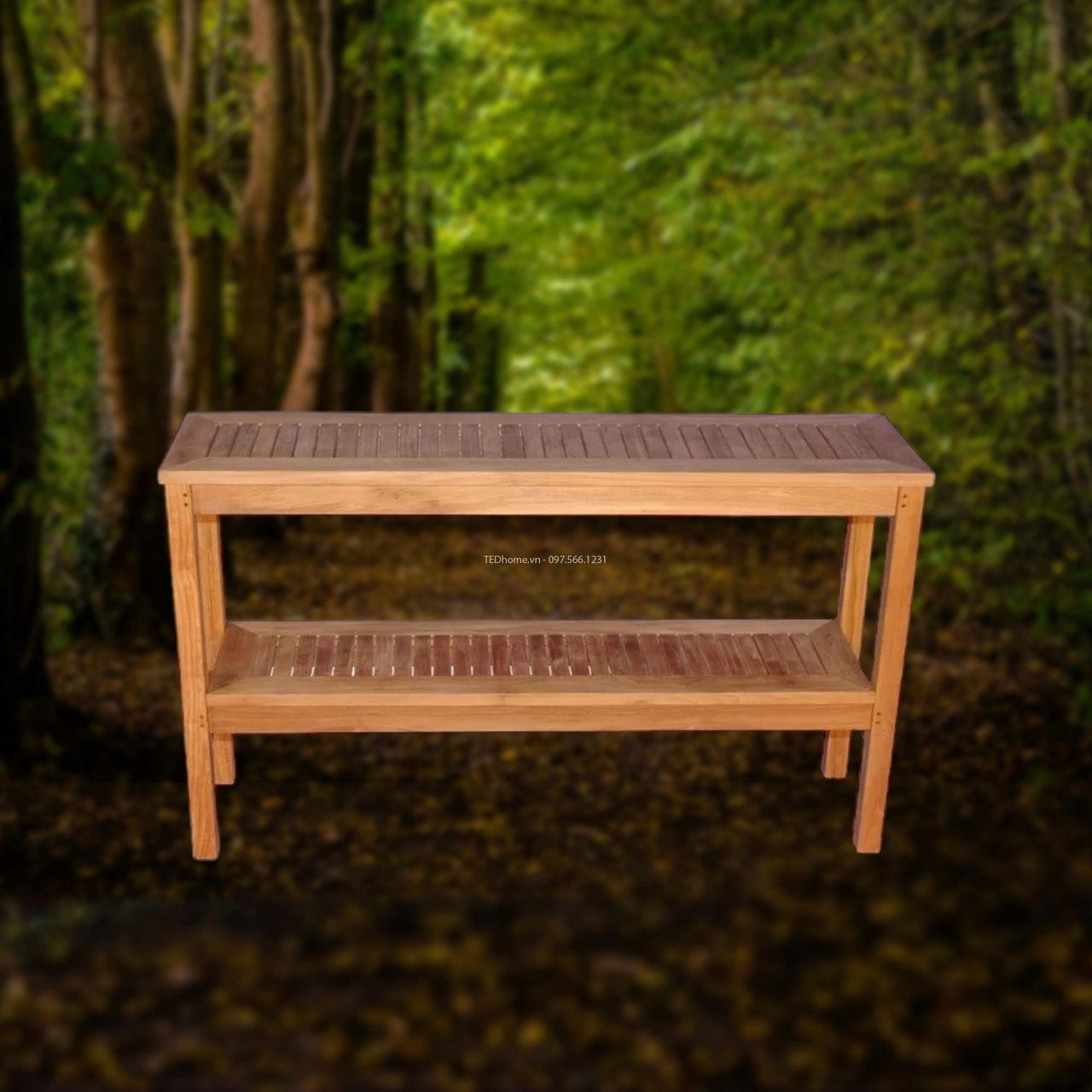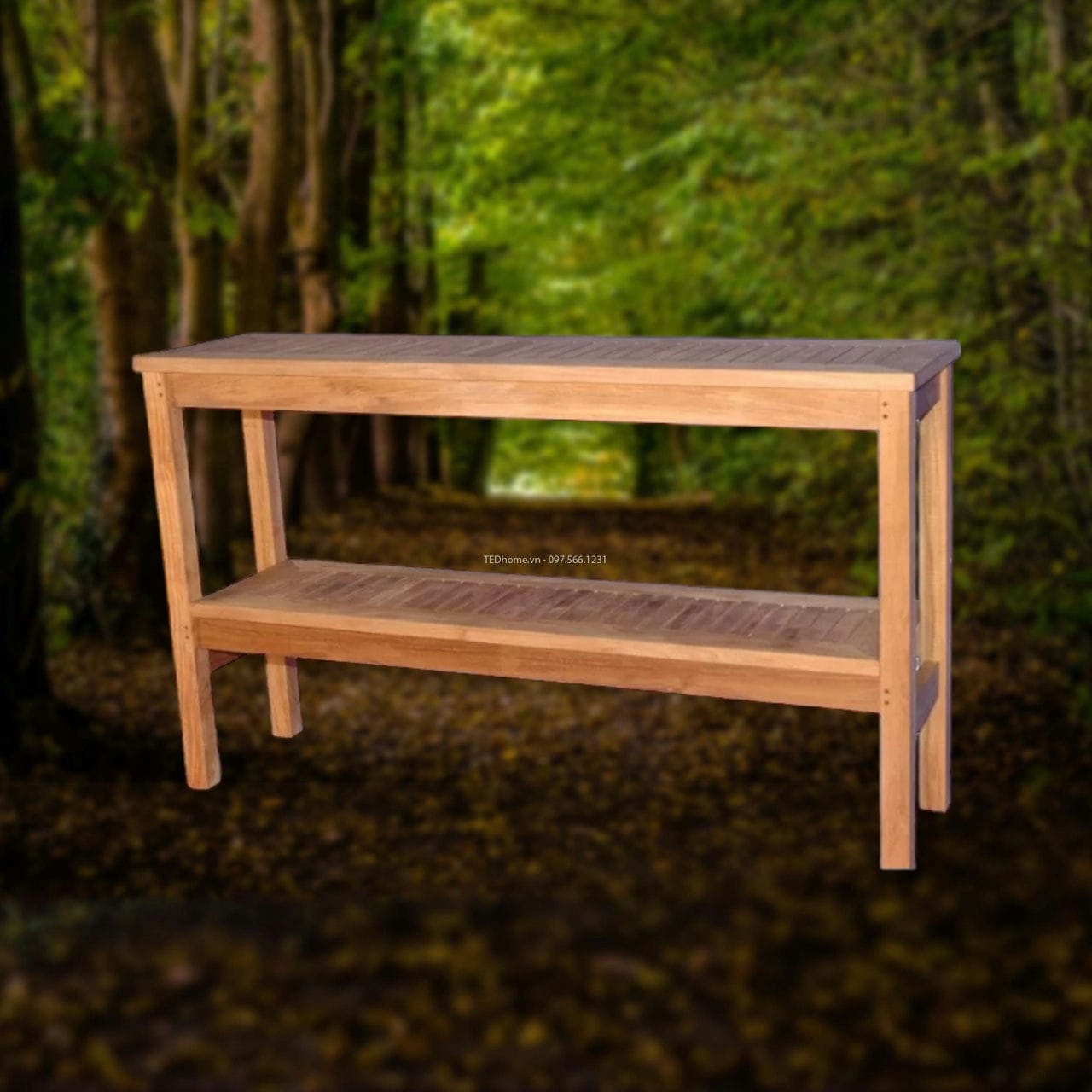 Hoàn thiện sân hiên của bạn với một chiếc bàn console này. Được làm từ gỗ teak tạo cảm giác mộc mạc, gần gũi, đơn giản, món đồ này có bàn hình chữ nhật có kệ thấp được cân bằng trên các chân gỗ.